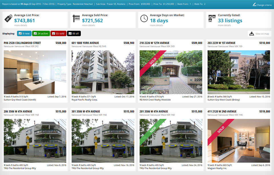 Created in real-time with up to minute listings, solds and stats.